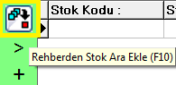 Stok seçmek için, imleç stok kodu alanındayken klavyeden "F10" tuşuna basılır ya da "Stok Rehber" butonuna tıklanır.